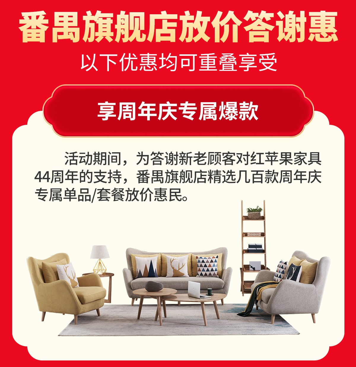 红苹果家具-爆款推荐-10月25-26日红苹果家具番禺旗舰店 44周年庆典 放价答谢惠