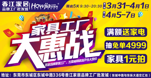 热门商家排行榜-【家具卖场】3月31-4月1日/4月5-7日香江家居东莞店 家具工厂大惠战