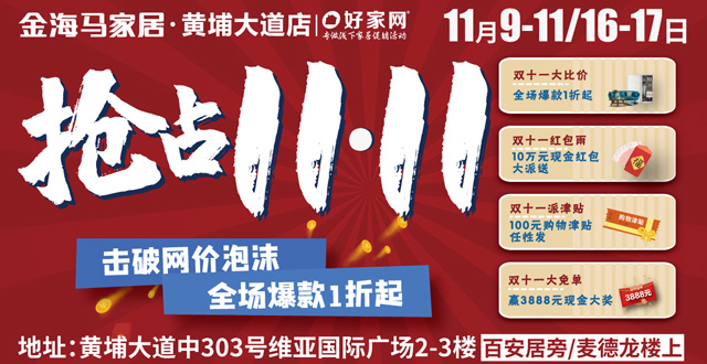 热门商家排行榜-【家具卖场】11月9-11/16-17日 金海马家居黄埔大道店 抢占11·11