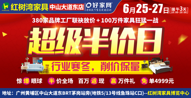 利亚斯-爆款推荐-【家具卖场】6月25-27日红树湾中山大道东店 超级半价日