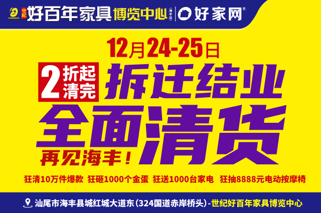 好百年家具1-爆款推荐-12月24-25日世纪好百年海丰店 拆迁结业 全面清货