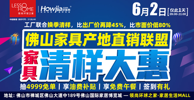 现场百万件特价产品同享活动价,请网上报名锁定优惠折扣,在6月2日(周日,限此1天)亲临现场查看。半年之内送货均有效,特殊情况还可以延期。