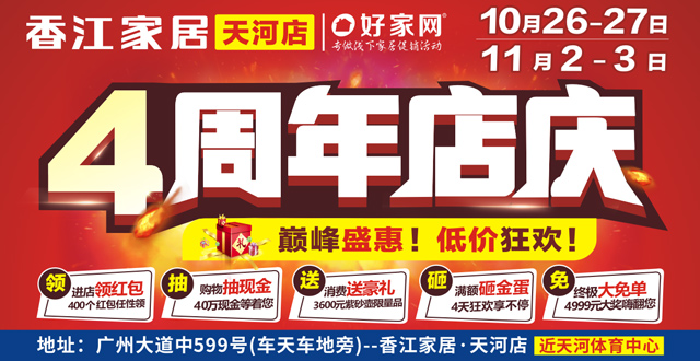 【家具卖场】10月26-27日/11月2-3日 香江家居天河店 4周年店庆