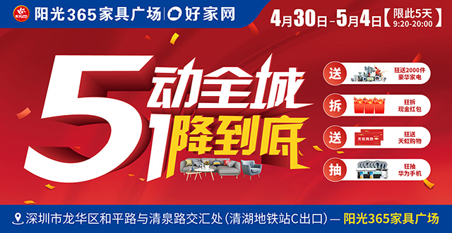 热门商家排行榜-4月30日-5月4日 阳光365家具广场 5动全城 1降到底